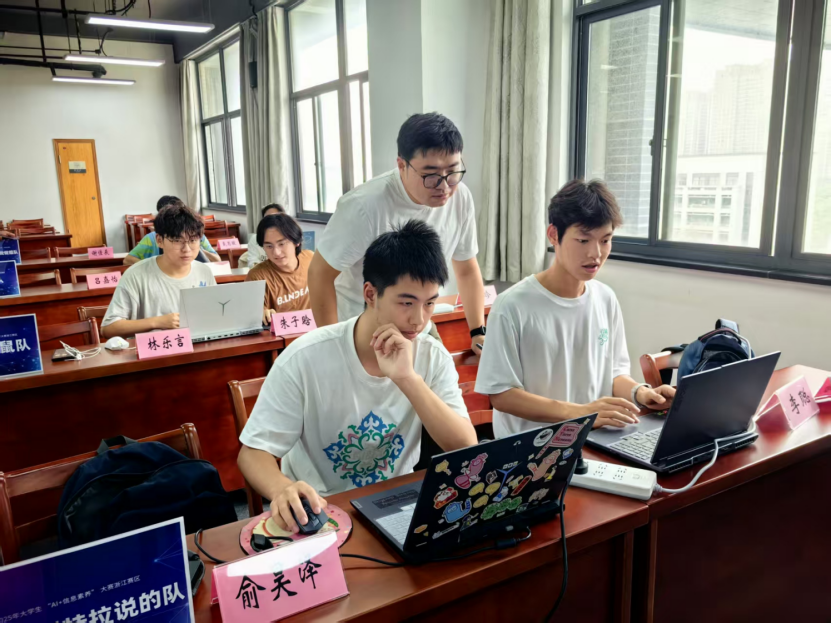 发布时间:2025-10-20 | 点击量:2810月18日,浙江省大学生“AI+信息素养”大赛省赛淘汰赛在全省各高校同步举行。湖州师范学院作为参赛单位之一,积极组织本校本科生10支和研究生5支晋级队伍在校内集中参赛。整个淘汰赛采用线上限时答题结合全程网络直播的形式,赛事紧张激烈、公开透明。经过激烈角逐,我校研究生团队“深藏BLUE队”发挥出色,成功晋级省赛决赛,将于11月15日代表学校赴杭州电子科技大学参加最终角逐。