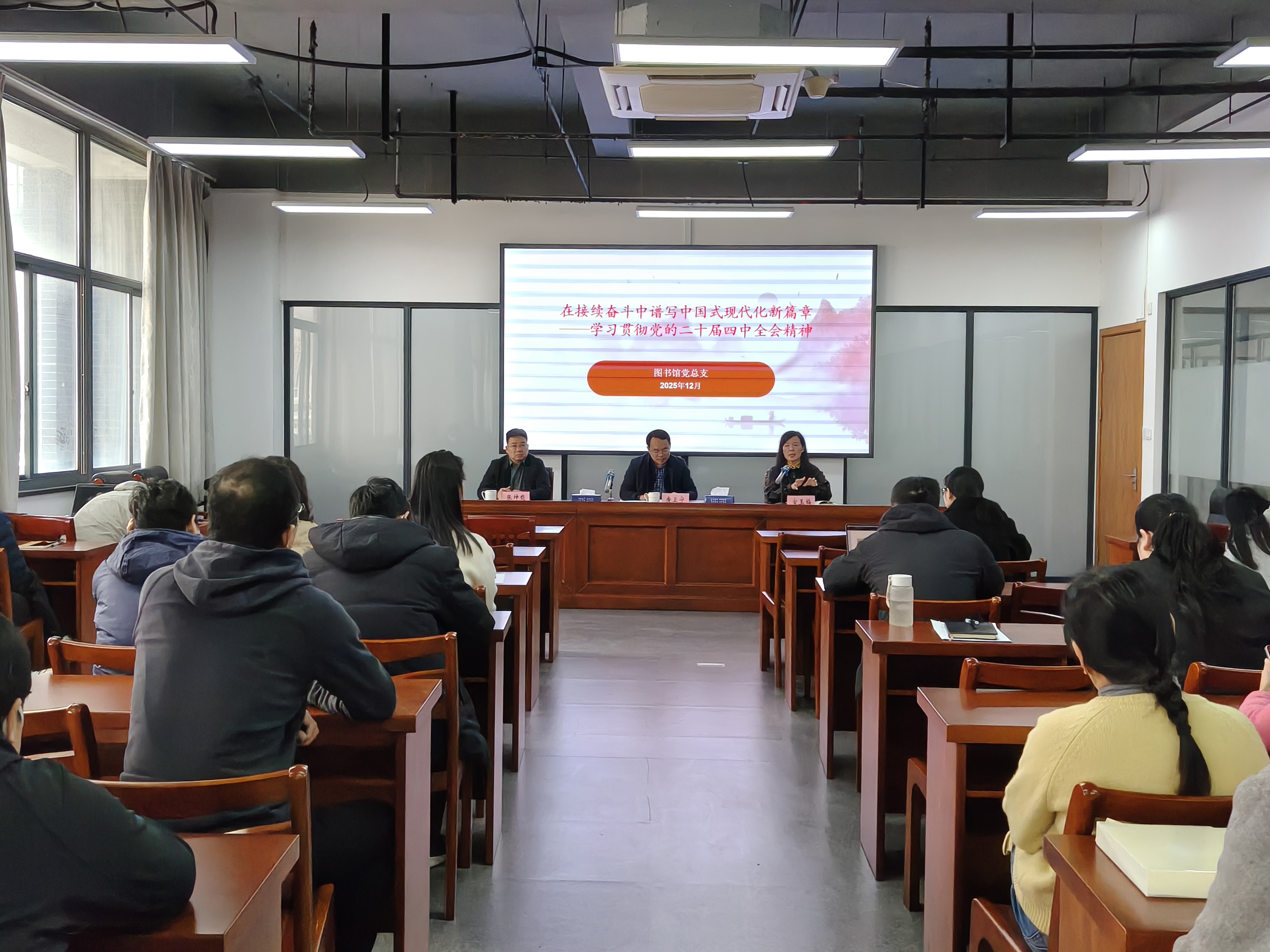宣玉梅传达了学校党委书记许慧霞同志关于学习贯彻四中全会精神的指示,强调这是当前和今后一个时期的首要政治任务。结合图书馆实际,宣玉梅对全体馆员提出三点要求:一是要深化思想认识,把准定位;二是要聚焦主责主业,提升服务能力;三是要强化担当作为,以扎实的工作作风和昂扬的精神状态,切实推动图书馆事业高质量发展,为学校发展提供有力支撑。此外,宣玉梅对等级平安校园建设工作进行了专项部署。
