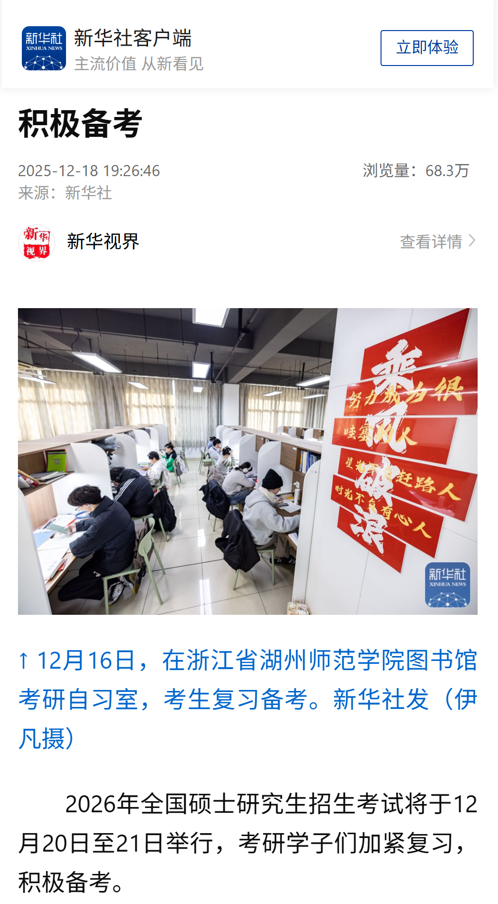 2025年12月18日,新华社客户端报道我校图书馆考研自习室,考生复习备考。链接如下: