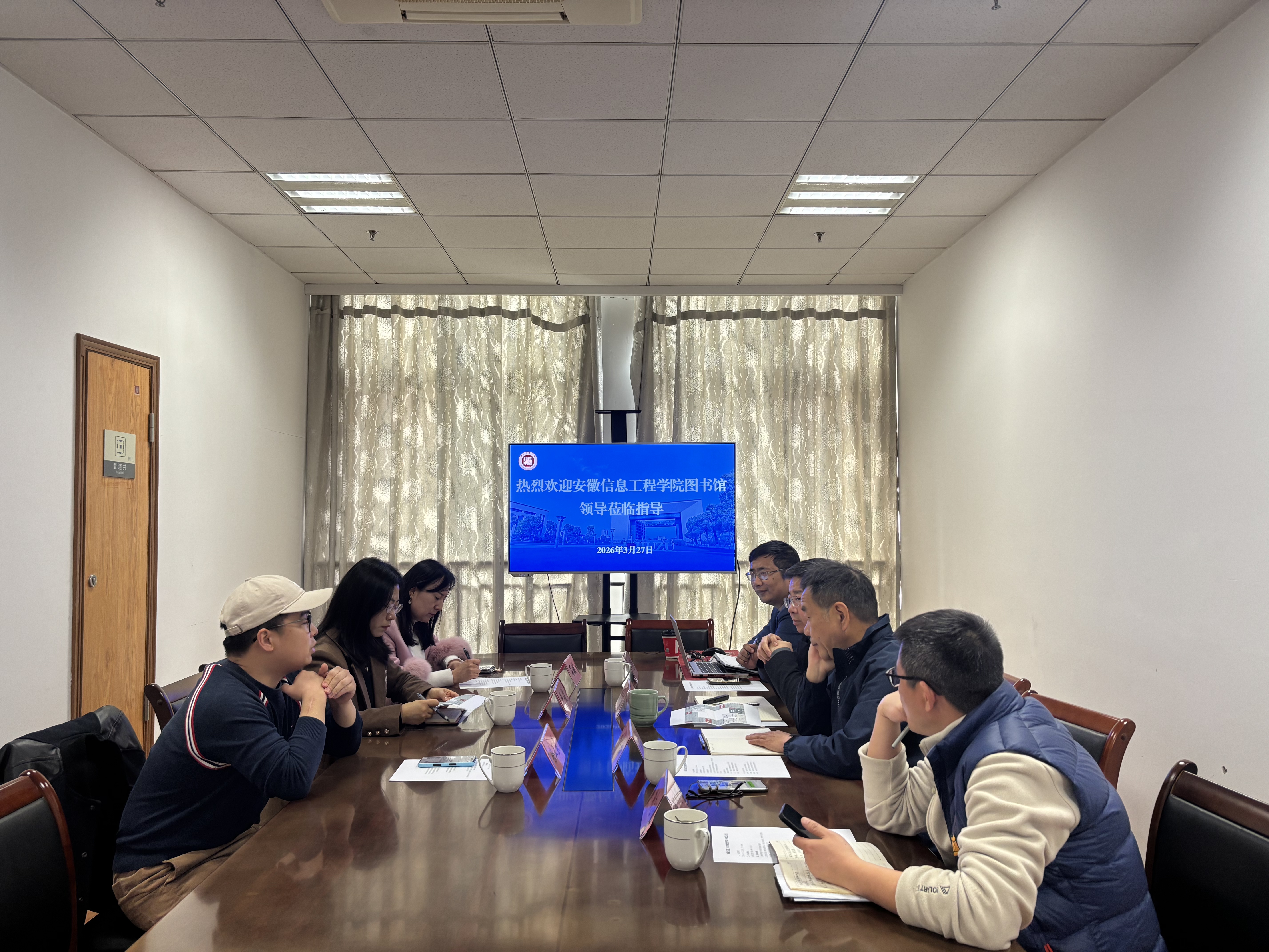 3月27日上午,安徽信息工程学院图书馆主管严俊等一行来馆调研,副馆长张坤能及相关部室负责人参加接待。