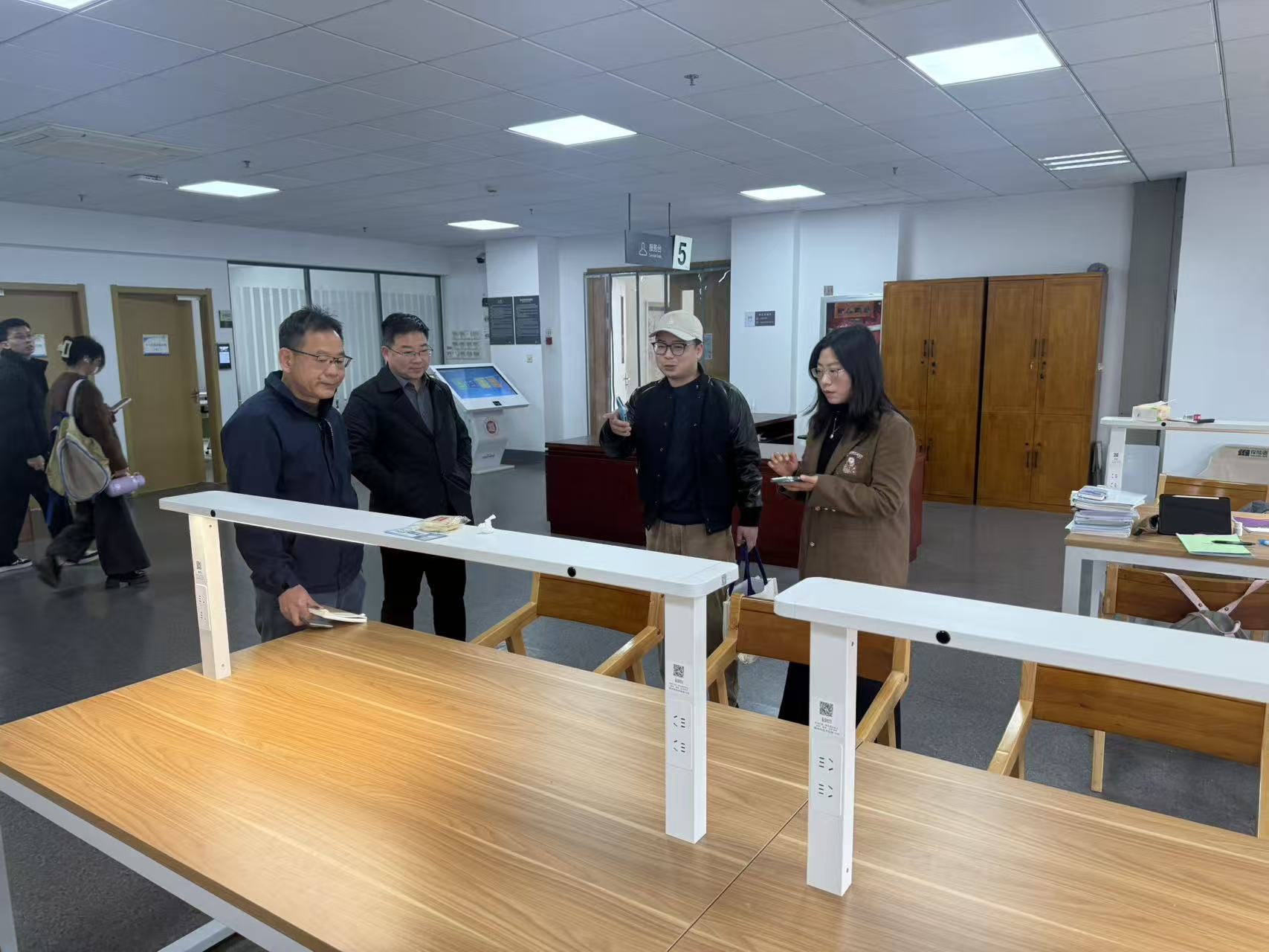 会后,一行人等赴东校区图书馆五楼AIGC实训研习空间及三楼考研专用学习空间开展实地调研。